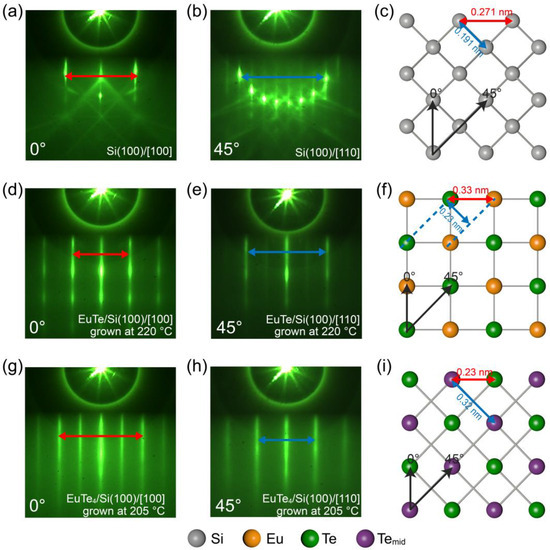 - Frank, N.; Springholz, G.; Bauer, G.H. Strain induced islanding of EuTe epitaxial films observed by in-situ RHEED and STM investigations. Mater. Sci. Forum 1993, 143–147, 1623–1628. [Google Scholar] [CrossRef]