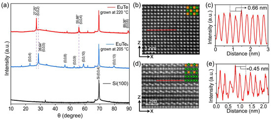 Chicago/Turabian StyleYu, Fan, Xiaodong Qiu, Jinming Zhou, Lin Huang, Bin Yang, Junming Liu, Di Wu, Gan Wang, and Yi Zhang. 2023. "Tailoring the Structure and Properties of Epitaxial Europium Tellurides on Si(100) through Substrate Temperature Control" Materials 16, no. 22: 7093. https://doi.org/10.3390/ma16227093