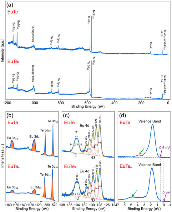 | Te 3d3/2 | 0.671 | 0.646 | Te 3d3/2:Eu 3d5/2 | 0.471 | 1.782 |