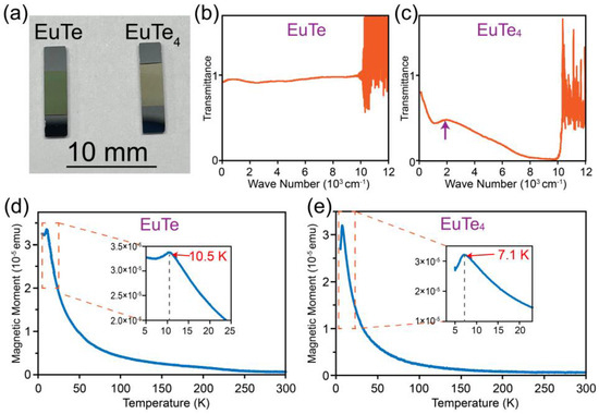 3.3. Physical Property Characterizations of EuTe and EuTe4