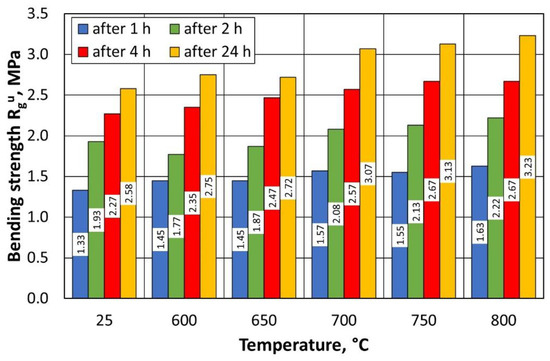Each type of specimen (A and B) was measured at appropriate time intervals from the completion of the filling of the mould for compacting or printing the specimen, i.e., after 1, 2, 4, and 24 h. After the strength samples were prepared, they were placed in a room with stable temperature and humidity conditions. The results presented in this publication are the average of three measurements.