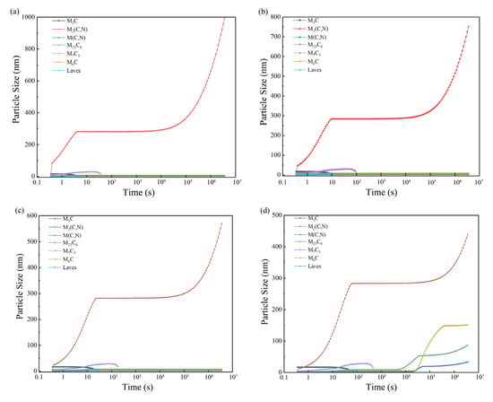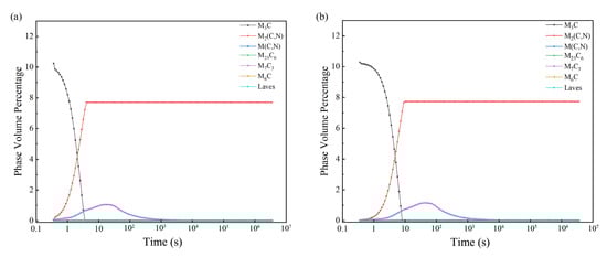 In addition to molybdenum and vanadium, a small amount of chromium is also present in MC carbides. Figure 4a shows that the chromium content remains almost unchanged throughout the whole process, indicating that the chromium and carbon formed by the M(C,N) carbides are more stable.