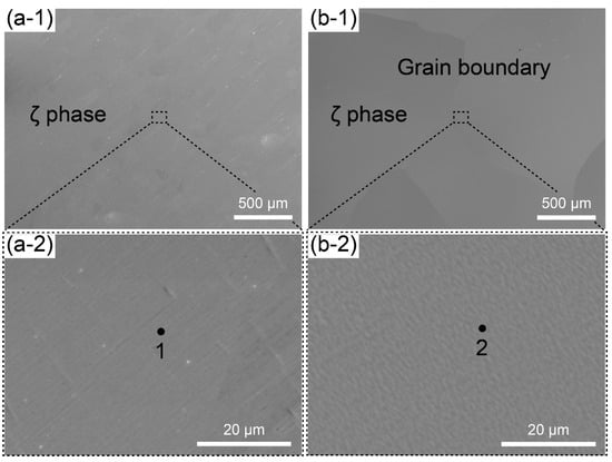 SEM images of (a-1,a-2) as-solidified ingot and (b-1,b-2) heat-treated sample.