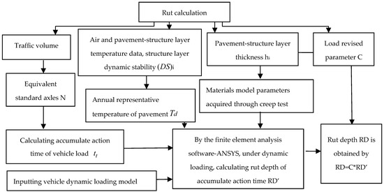 - Based on the coupling action of vehicle dynamic loading and the pavement, the methods for calculating the representative temperatures, the time-series of the vehicle loading, and loading revised parameters, a calculation method for rutting prediction is formulated based on ANSYS software. The best pavement structure of resisting rutting can be decided by using the calculation method of rutting prediction. The rutting problem can be solved by using this method when the pavement is designed.