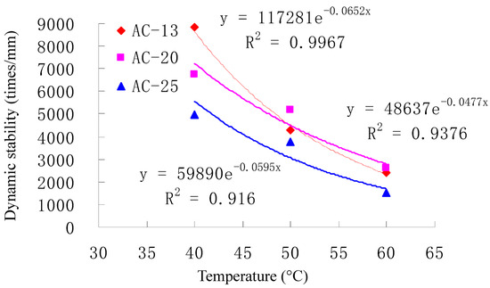 The results of its monthly temperatures are given in Table 9. The rutting tests results of their asphalt mixtures with the optimum asphalt content are shown in Figure 4. The dynamic stability of the monthly average pavement temperature can be obtained according to the Regression equation for the dynamic stability shown in Figure 4. The annual representative pavement temperature of Hanchang highway at 40.3 °C was obtained by calculation last.