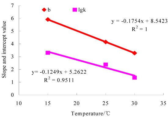 The influence of temperature on the slope and intercept of ~ straight lines.
