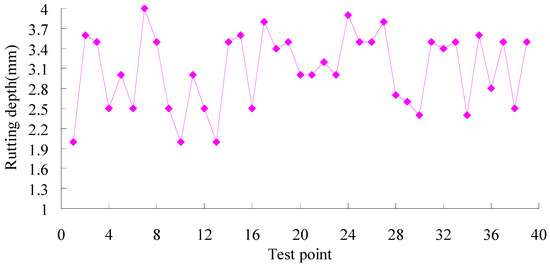 The tracking tests of rutting depth were conducted according to the Field Test Methods of Highway Subgrade and Pavement (JTG 3450-2019) [29] in China after the Hanchang expressway was open to traffic for two years, and the results are shown in Figure 10.