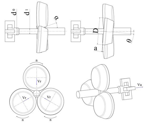 θ to the rolling axis. They can diverge and converge, as a result of which the initial billet diameter