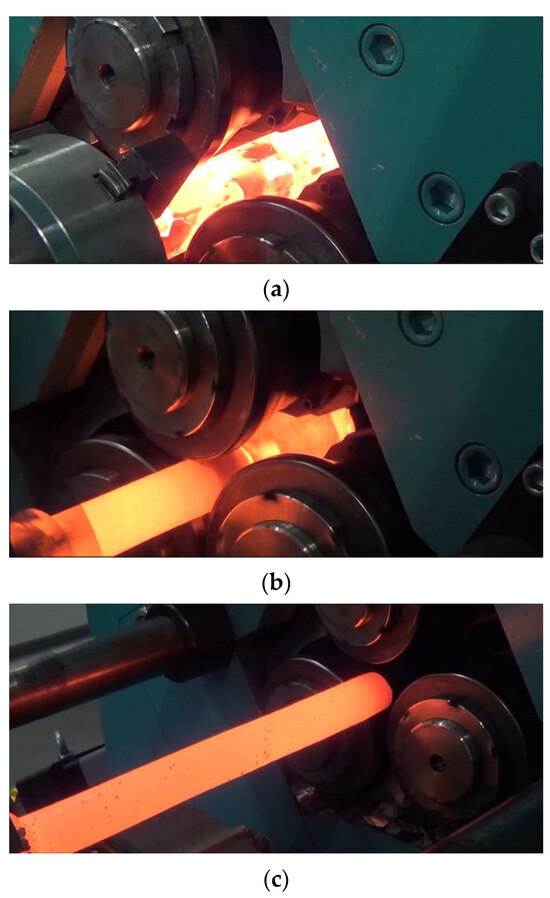 14] presented a modification of the three-roller skew rolling method, called tandem flexible skew rolling. In this method, two-roller skew rolling is used to hollow the billet with the Mannesmann method first, and then the billet is placed on a mandrel. After that, rolling is conducted with three tapered rollers that shape the workpiece as desired. The proposed solution reduces, among other things, the area needed for the rolling mill setup, rolling forces, as well as tool manufacturing costs.