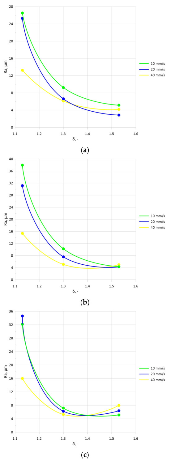 l calculated according to Equation (2). It can also be presented in the form of an approximate formula (3). The measurement was made with the contact method using Hommel-Etamic’s 3D T8000 RC120-400 with a diamond measuring tip. The measuring length was set to 48 mm and the measuring tip speed was 1 mm/s.