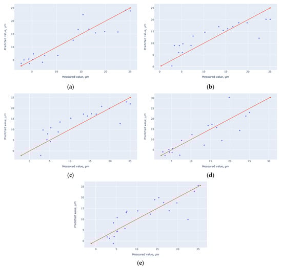 Ra parameter (continuous value) expressed in μm. The dataset was divided into a training set (containing 75% of the entire set) and a test set (25% of the entire set). Calculations were carried out in the Google Colaboratory environment.