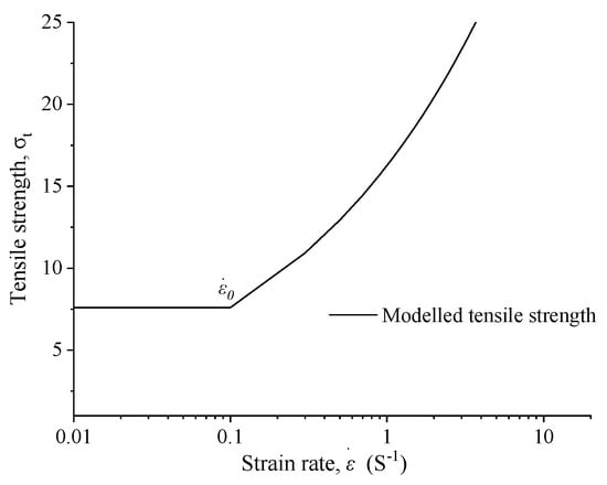 where is the static tensile strength of the sandstone, is the equivalent strain rate, and is the critical strain rate. It essentially describes a bilinear relationship between the strain rate and tensile strength, as illustrated in Figure 7.