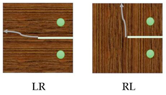 The fracture toughness for natural pine wood and densified pine wood obtained are presented in Table 3. For the CT tests, it was seen that, both in the fiber direction and the transverse direction, the crack propagated between the grains of wood, as shown in Figure 11. This demonstrates that the densification process significantly enhances the fracture properties of wood.