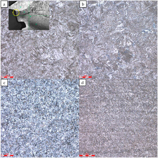 Metallographic structure near the fracture: (a) Microstructure at the weld toe; (b) Microstructure of heat-affected zone near the weld; (c) Microstructure of heat-affected zone near tubing; (d) The microstructure of the tubing base metal.