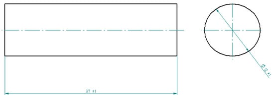 The main components of the epoxy composition, the resin and curing agent were mixed, taking into account the appropriate stoichiometric ratio recommended for these specific components. For this resin and curing agent, the stoichiometric resin:curing agent ratio is 100:10. The compounds adopted in the research plan (Table 5) were prepared by mixing the ingredients for 2 min using a table-top drill at 730 rpm and then placed in molds with walls coated with release agent. The epoxy compound samples used in the study were produced in a cylindrical mold of diameter ⌀12 ± 1 mm and length 37 ± 1 mm (Figure 1).