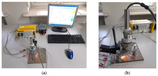 The measurements of residual stresses (RS) were conducted using the hole-drilling method (HDM). This procedure is standardized by ASTM Standard Test Method E 837 [23], and the practical procedure of implementation is described in detail in Tech Note TN-503 [24]. These measurements are used to determine the state of uniform residual stresses or their change with the thickness. In the presence of residual stresses, the realization of even a small hole in the material causes stress relaxation. This relaxation is related to the change in strain in the vicinity of the hole. Measuring the strain through strain gages allows the value and rotation of principal stress to be determined.