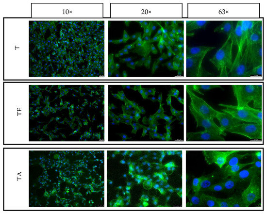 Dulbecco’s Modified Eagle Medium (DMEM), Foetal Bovine Serum (FBS), antibiotic (Penicillin-Streptomycin 10,000 U/mL), Trypsin EDTA (0.25%), Phosphate-Buffered Saline (PBS) pH 7.4, Presto Blue, NucBlue and ActinGreen were purchased from Thermo Fisher Scientific (Waltham, MA, USA). Mouse fibroblast L929 and human osteoblast MG63 were purchased from Sigma-Aldrich (ATTC), St. Louis, MO, USA.