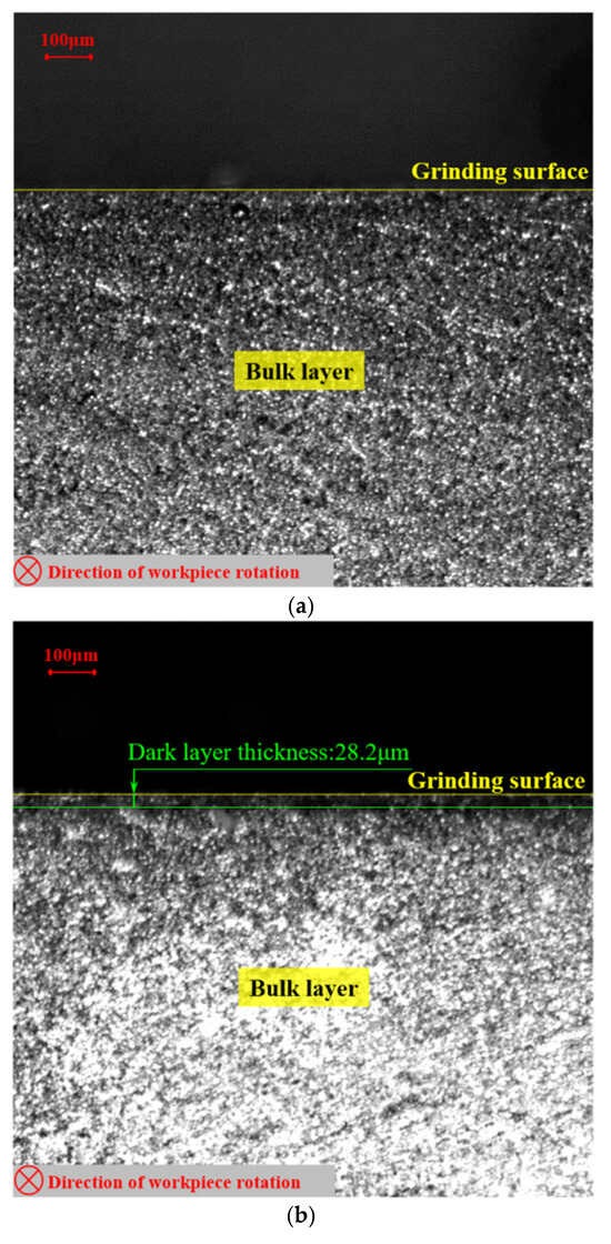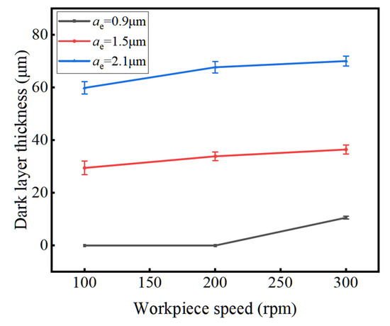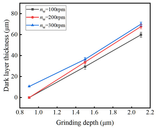 - The thickness of the dark layer increased with the increase in workpiece speed and grinding depth, and the influence of grinding depth was significant.