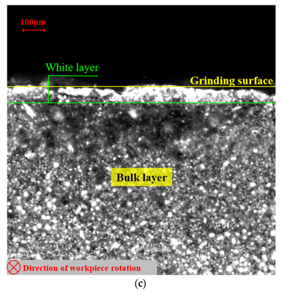 - Huang, X.; Zhou, Z.; Ren, Y.; Mao, C.; Li, W. Experimental Research Material Characteristics Effect on White Layers Formation in Grinding of Hardened Steel. Int. J. Adv. Manuf. Technol. 2013, 66, 1555–1561. [Google Scholar] [CrossRef]