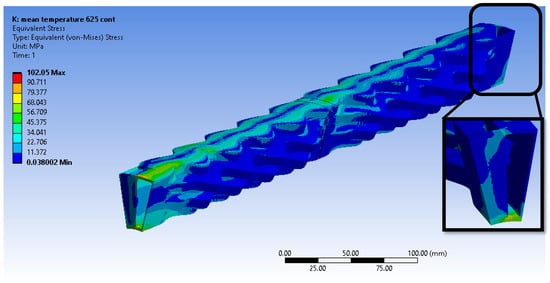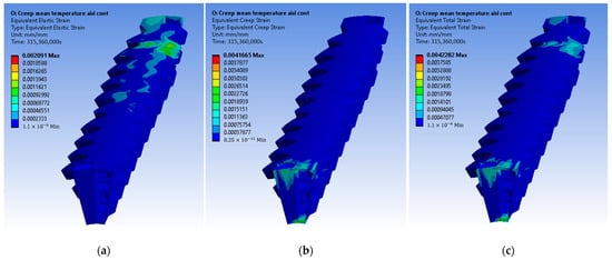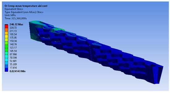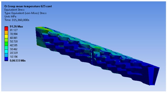 Figure 12 presents the resulting strain rates of the creep model in Equation (20) in the range of temperatures and stresses that occur during the steady-state operation of the recuperator.