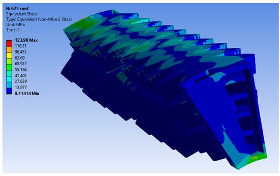 The loads applied to the recuperator are due to the imported non-uniform temperature distribution (Figure 2) and the pressure of the air and exhaust gas under steady-state operation.
