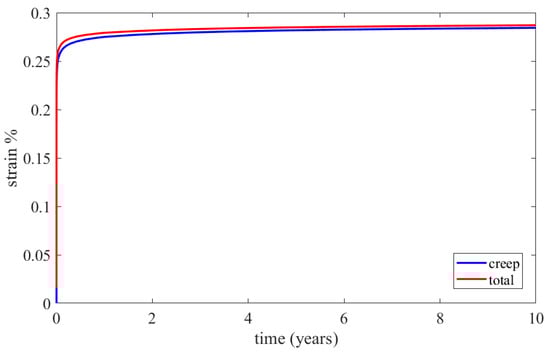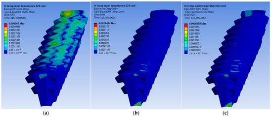 As presented, the creep behavior is different at temperatures below and above a critical one, which is about the half of its melting point . The value of Inconel 625’s critical temperature is given by Equation (13).