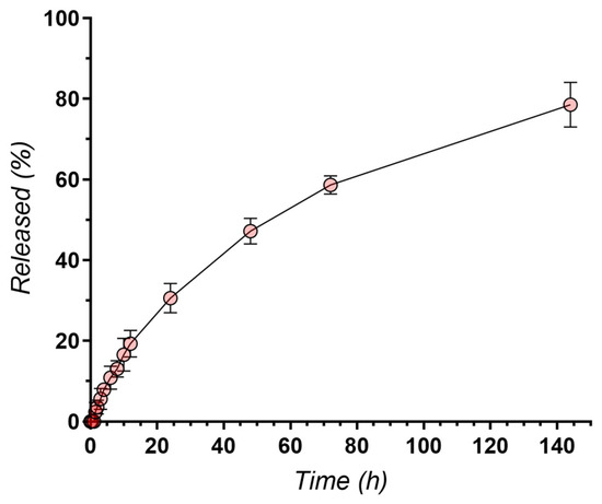 The mean release profile of vancomycin from Zr-PCL-vancomycin samples is indicative of a sustained release of the active component, with 78.55% of the total loaded vancomycin being released within 144 h (Figure 17).