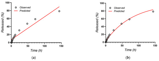 The release data of vancomycin were fitted using the equations of several diffusion-based kinetic models, such as Zero Order, First Order, Higuchi, Hixson–Crowell and Korsmeyer–Peppas [63] (Figure 18).