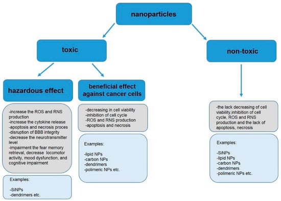 - Sawicki, K.; Czajka, M.; Matysiak-Kucharek, M.; Fal, B.; Drop, B.; Męczyńska-Wielgosz, S.; Sikorska, K.; Kruszewski, M.; Kapka-Skrzypczak, L. Toxicity of metallic nanoparticles in the central nervous system. Nanotechnol. Rev. 2019, 8, 175–200. [Google Scholar] [CrossRef]