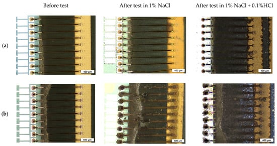 3.3. Galvanic Corrosion Behavior in First and Second Bond Areas on the PCB