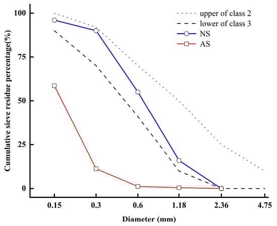 To make ARSCC, aeolian sand was extracted from the Gurbantungut Desert in northern Xinjiang. The ARSCC’s performance is greatly impacted by the characteristics of aeolian sand. This study’s fine aggregate’s fundamental physical characteristics are displayed in Table 3. Figure 1 shows the fine aggregate particle size distributions obtained via sieve analysis.