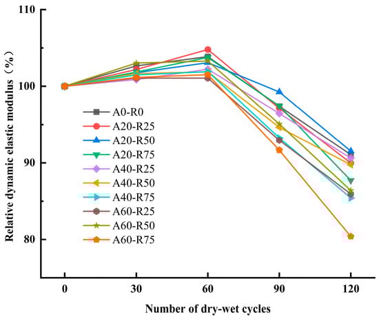 Relative dynamic elastic modulus of ARSCC with different replacement ratios.