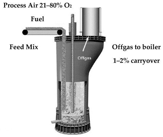 The design of the Isasmelt furnace and the use of a steel lance allow the melting, oxidation and reduction processes to be performed. The remelting process is carried out at a temperature of 1150–1250 °C [47,48,53] (Figure 4).