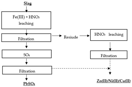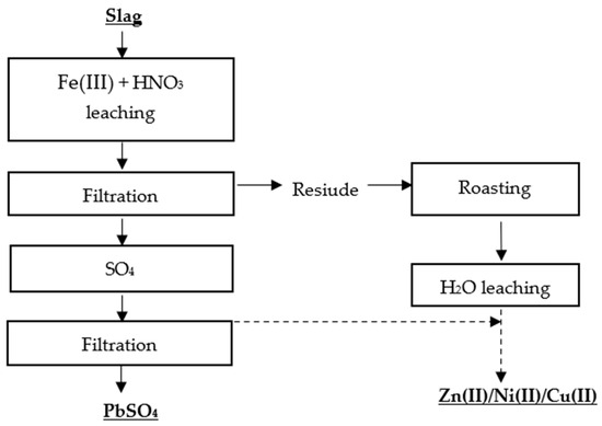 Zinc is produced by hydrometallurgical and pyrometallurgical methods, which account for 80% and 20% of global production, respectively [7,8,9,10,11]. Hydrometallurgical methods involve leaching a roasted concentrate with an H2SO4 solution. The zinc sulphate solution obtained by leaching is purified from admixtures, and zinc is then separated from the purified solution in electrolytic tanks. These methods allow high-quality metal production with much lower environmental impact than that of pyrometallurgical methods. However, hydrometallurgical methods cannot be used for lead production because lead salts are only weakly soluble [12,13,14,15].
