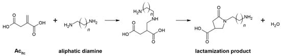 - Noordzij, G.J.; Wilsens, C.H.R.M. Cascade Aza-Michael Addition-Cyclizations; Toward Renewable and Multifunctional Carboxylic Acids for Melt-Polycondensation. Front. Chem. 2019, 7, 729. [Google Scholar] [CrossRef]