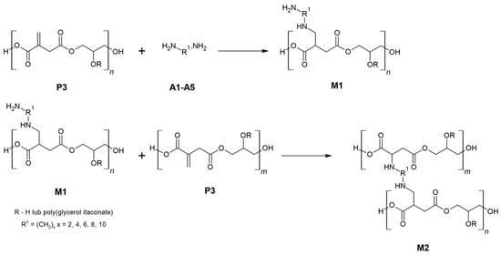Miętus, M.; Kolankowski, K.; Gołofit, T.; Ruśkowski, P.; Mąkosa-Szczygieł, M.; Gadomska-Gajadhur, A. Poly(glycerol itaconate) Crosslinking via the aza-Michael Reaction—A Preliminary Research. Materials 2023, 16, 7319. https://doi.org/10.3390/ma16237319