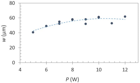 The relationship between groove width and the power of laser device used. All results are from grooves created using two repetition cycles.