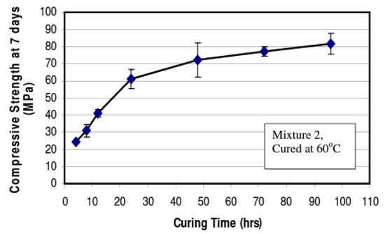 - Perera, D.S.; Uchida, O.; Vance, E.R.; Finnie, K.S. Influence of Curing Schedule on the Integrity of Geopolymers. J. Mater. Sci. 2007, 42, 3099–3106. [Google Scholar] [CrossRef]
