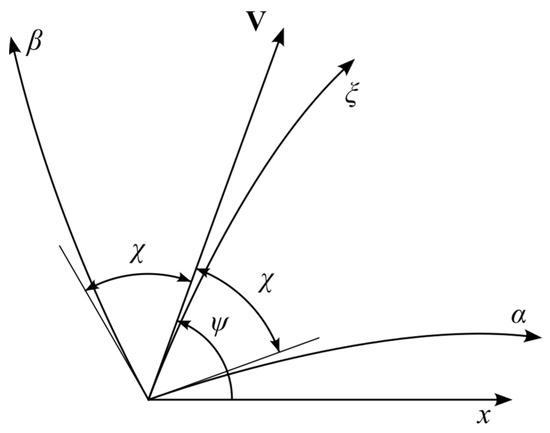 where Hξ and Hη are the scale factors of the ξ- and η-coordinate curves, respectively, and . The characteristic coordinates are denoted as (α, β). The first equation in (6) corresponds to the α-lines and the second to the β-lines. The ideal flow condition requires that the velocity vector V is tangent to the ξ-coordinate lines (Figure 2). The velocity vector may also be tangent to the η-coordinate lines. However, this condition is not required for the problem solved in the next section. The characteristic relations resulting from the stress equations are