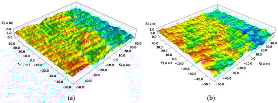 Three-dimensional morphology of aluminum alloy surface: (a) initial and (b) after laser irradiation about 0.05 J/cm2.