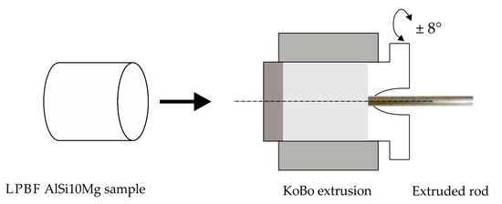 The KoBo extrusion process (Figure 3) was carried out on a custom-made hydraulic press using the following experimental parameters: