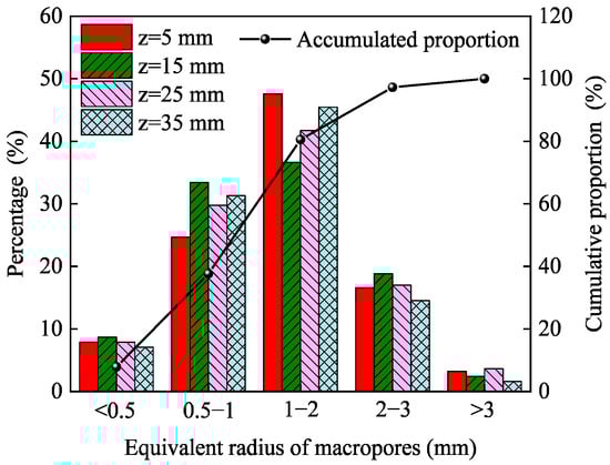 The percentage and cumulative proportion curve of macropores.