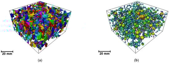 Porous asphalt (PA) or open-graded friction course (OGFC) is an environmentally friendly road material due to its noise reduction properties, cleaner rain runoff water, and improved traffic conditions in rainy weather. The performance of a porous asphalt mixture is dependent on its microscopic void (pore) features, which may refer to the content and distribution of its constituents [1]. As we all know, PA is a typical multi-phase composite material that consists of coarse aggregates, asphalt mortar, and voids. It is characterized by an uneven distribution of aggregates and pores, and the void structure has a random geometric distribution in the transverse and longitudinal directions at the mesoscopic scale, making it difficult to analyze the pore space of the mixture in detail. Thus, macroscopic indicators such as average porosity were used to describe its pore characteristics. However, existing research [2,3,4] shows that for the same kind of asphalt mixture, there are significant differences in its mechanical properties and flow characteristics in different directions. It is unreasonable to assume that it is an isotropic material when it produces strain under load. Jiang et al. [5] found that asphalt mixtures with identical air voids may have significantly different performances under given loading and environmental conditions. Zhao et al. [6] showed that asphalt mixtures at the same porosity level exhibit different seepage characteristics, and the spatial distribution and direction of voids have an influence on the flow behavior of the mixture. Liu et al. [7] tested the mechanical characteristics of asphalt mixtures in different directions and found that the anisotropy of the mixture depends on its internal discontinuous structure. Pang et al. [8] explored the difference in hydraulic conductivity of asphalt mixtures in the horizontal and vertical directions through permeability tests. The results indicated that, compared with horizontal hydraulic conductivity, vertical hydraulic conductivity has a more obvious impact on response time and spatial distribution. Therefore, how to obtain void characteristics from the mesoscale and conduct in-depth research on their anisotropy is the key to evaluating the impact of the void structure of a porous asphalt mixture on its macroscopic performance.