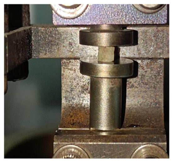 Before the test, the samples were thawed at room temperature, then the DMA procedure was applied to the cube samples using a Pyris Diamond Dynamic Mechanical Analyzer (Perkin Elmer, Waltham, MA, USA). CBAB samples were loaded along the vertical direction of the fixture, a preload of 0.5 mN was applied to ensure sufficient contact between the samples and the fixture, as shown in Figure 2. The tests were performed in compression mode with a constant temperature of 25 °C, and the amplitude of the dynamic compression force was 5 N. Each sample was tested at four frequencies (0.5, 1, 2, and 5 Hz) for 20 min each, and the dynamic viscoelastic modulus of CBAB samples with different BMD at different frequencies was obtained.