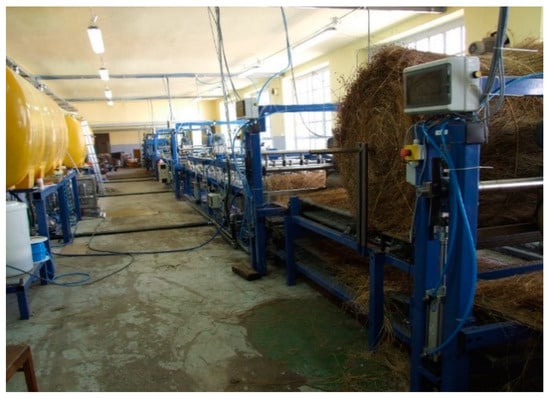 The Institute of Natural Fibres and Medicinal Plants National Research Institute (INF&MP-NRI) in Poznan also started work on the extraction of lower-quality fibers with the possibility of using them in the pulp and paper, composite materials, energy, and construction industries []. For this purpose, INFMP-NRI has developed a technological line that allows obtaining fibers from straw using the decortication method without prior drying of the straw [].