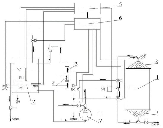 - Reservoir—a reservoir for soft process water, equipped with a heater with temperature sensor, pH electrode, and water level sensor;