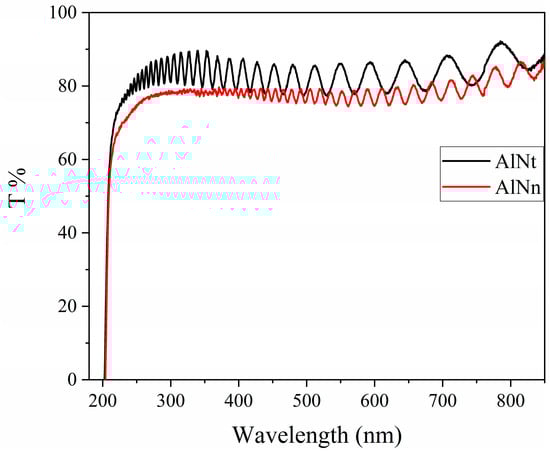 3.2. Optical Transmission Spectroscopy Analysis for AlN