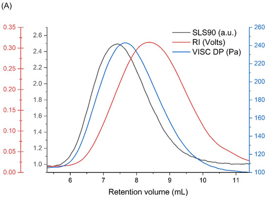 - Gaborieau, M.; Castignolles, P. Size-exclusion chromatography (SEC) of branched polymers and polysaccharides. Anal. Bioanal. Chem. 2011, 399, 1413–1423. [Google Scholar] [CrossRef] [PubMed]