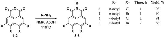 2.1.1. Synthesis of (N-octyl)-3,4,5,6-tetrahalo-1,8-naphthalimides 3 and 4