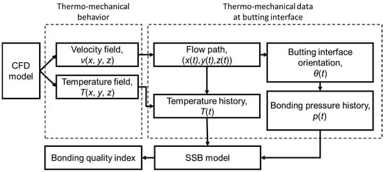In the present study, a CFD model is established to yield the thermo-mechanical behavior of the FSW process. By performing the butting interface tracking (BIT), the thermo-mechanical data at the specific butting interface are probed. Then the data are input into the SSB model to determine the BQI of the welding, as shown in Figure 1.